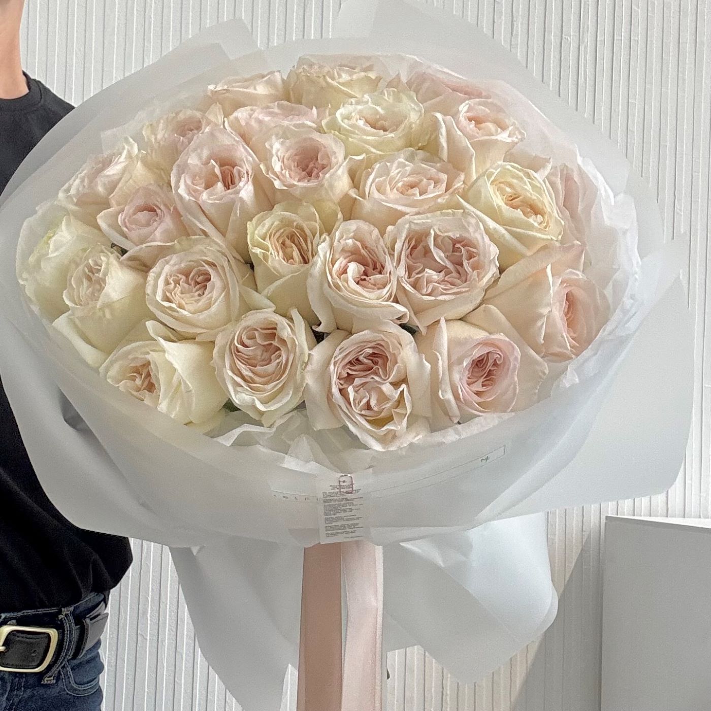 БУКЕТ ИЗ БЕЛЫХ ПИОНОВИДНЫХ РОЗ