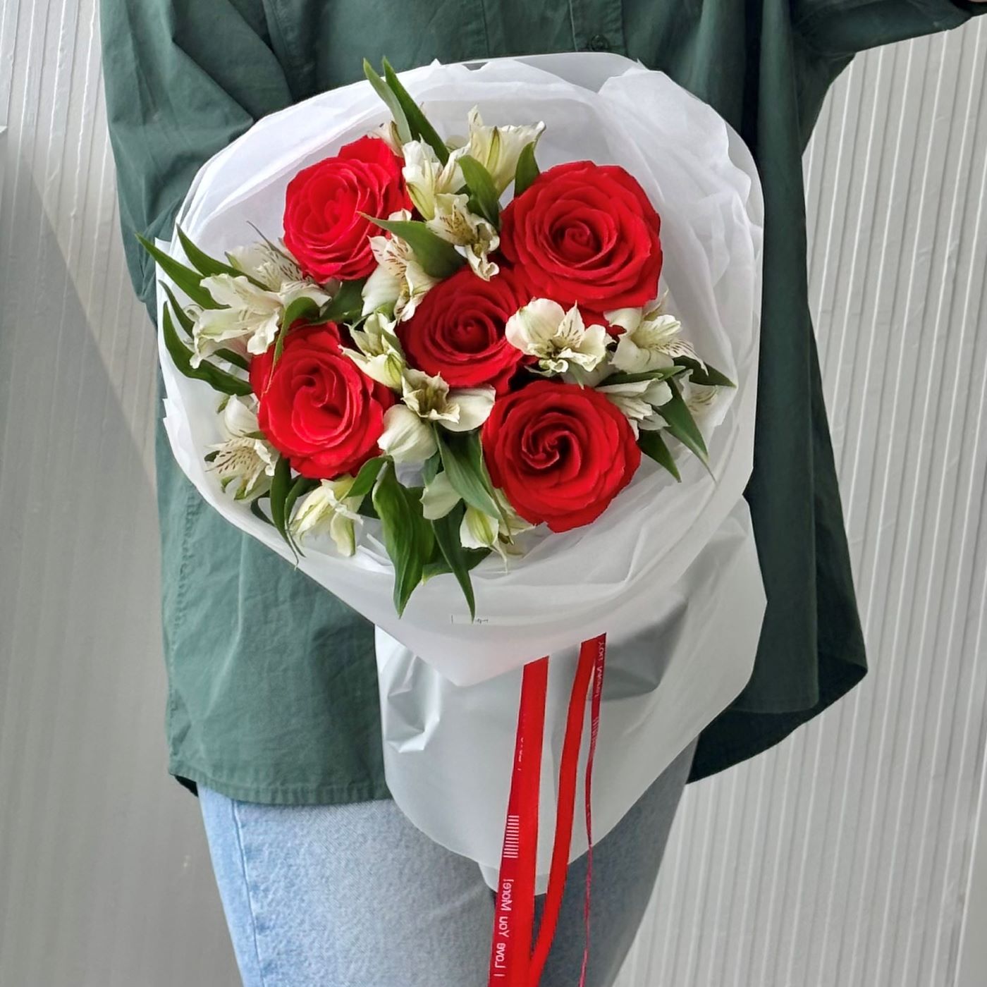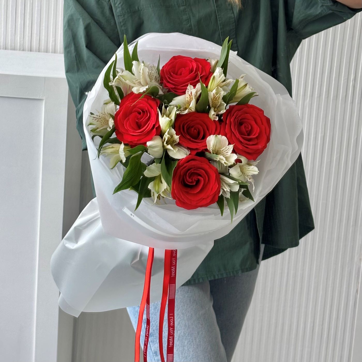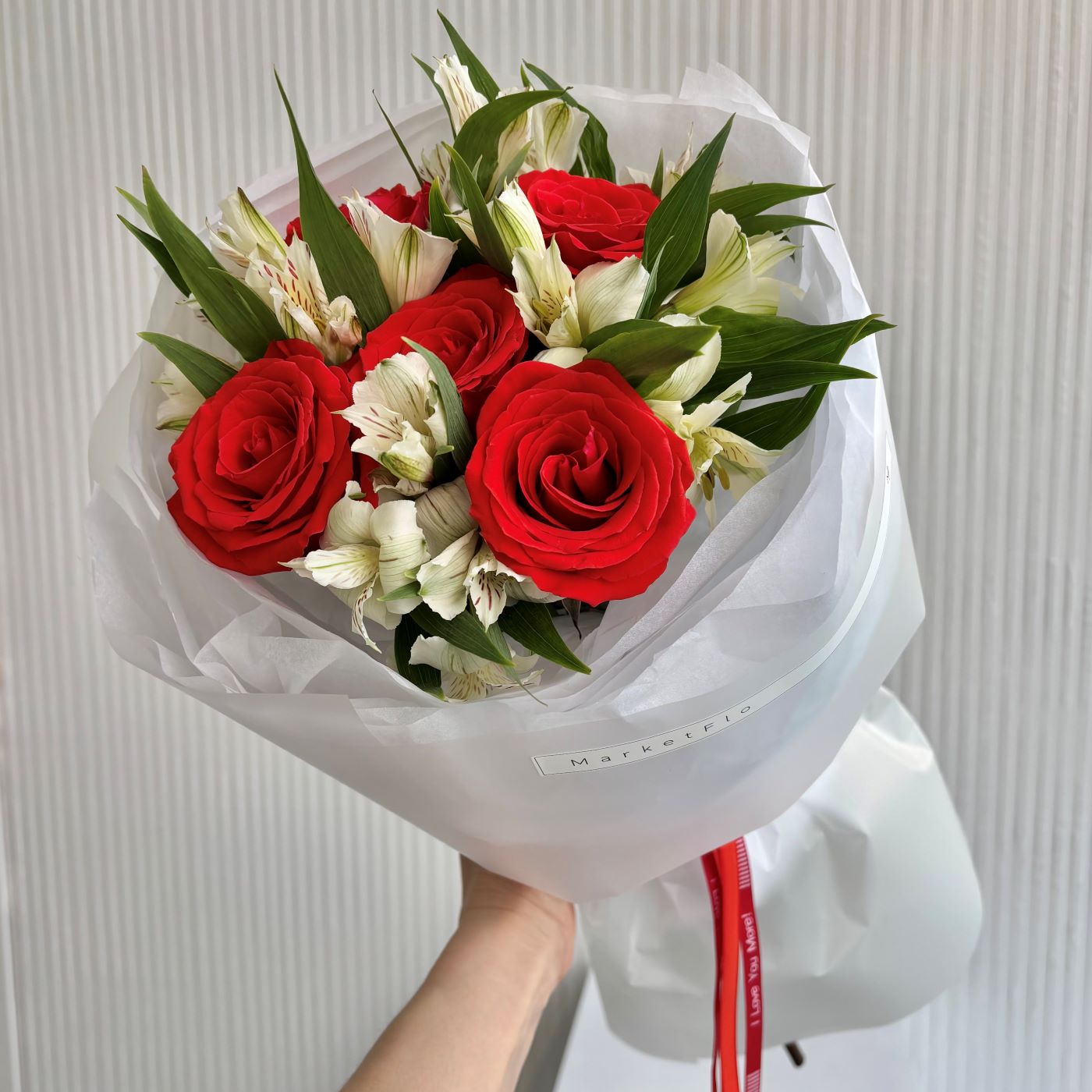 —БУКЕТ ИЗ РОЗ И АЛЬСТРОМЕРИИ