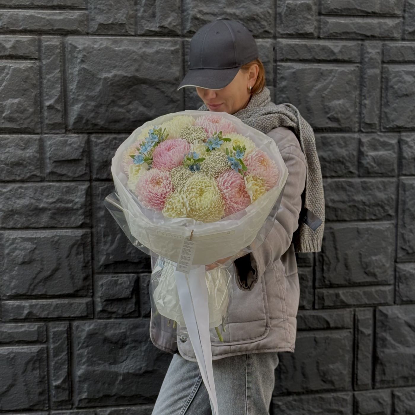 —БУКЕТ ИЗ ХРИЗАНТЕМ И ОКСИПЕТАЛУМА
