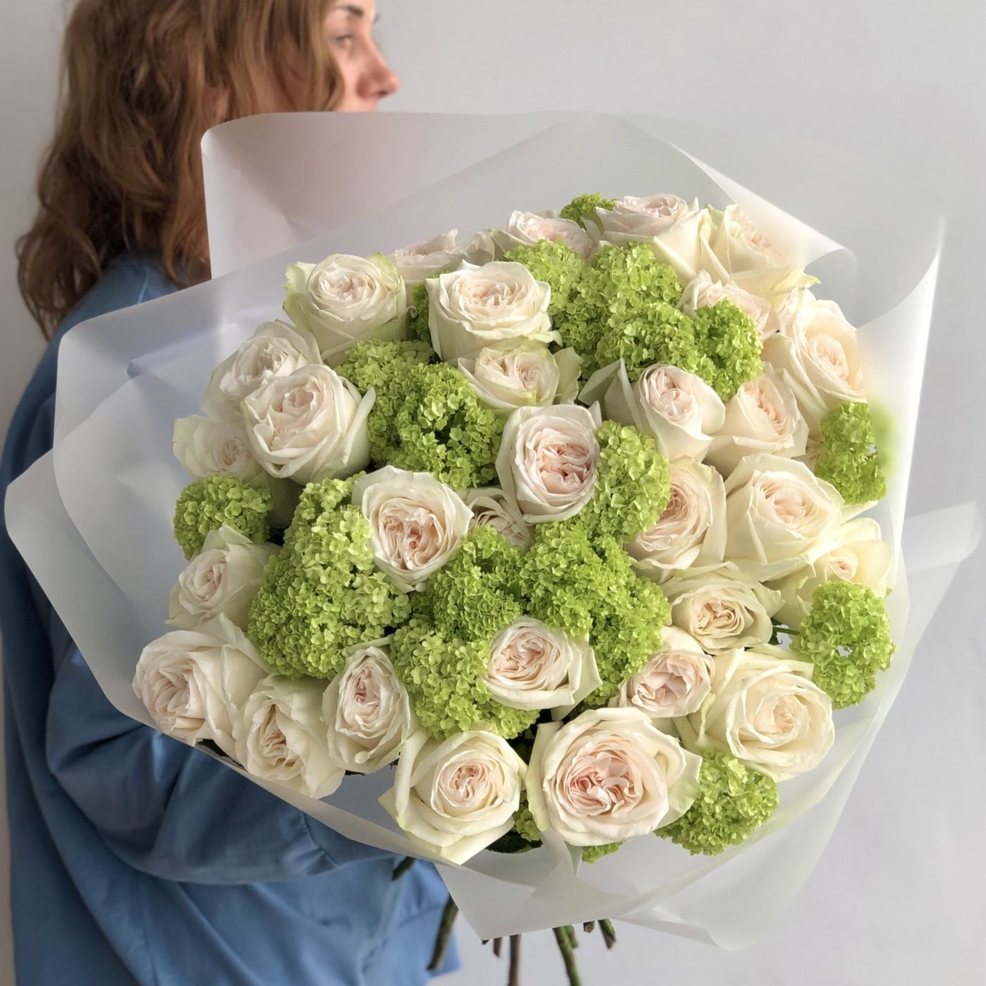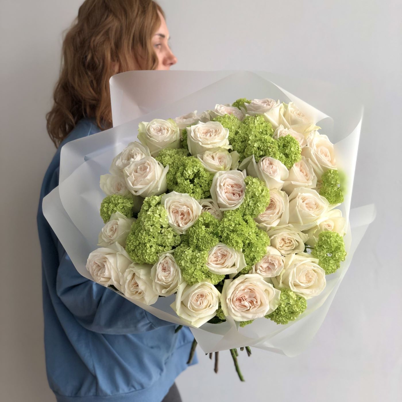 —ДУОБУКЕТ ИЗ ПИОНОВИДНЫХ РОЗ И ВИБУРНУМА