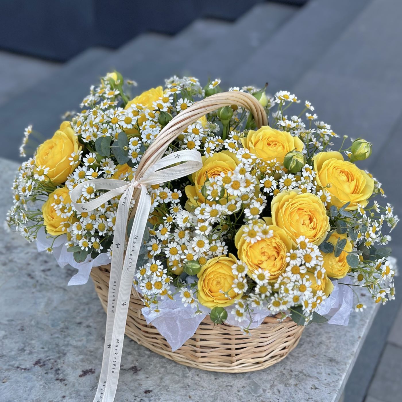 КОРЗИНА С РОЗАМИ И РОМАШКАМИ