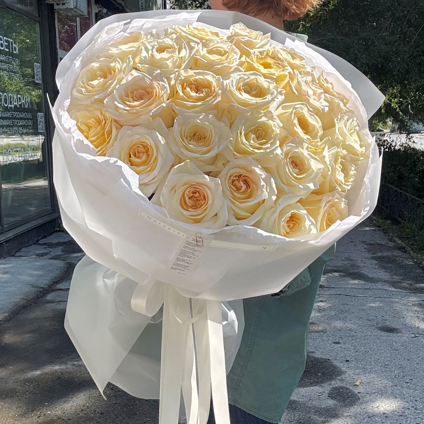 —БУКЕТ ИЗ СЛИВОЧНЫХ ПИОНОВИДНЫХ РОЗ