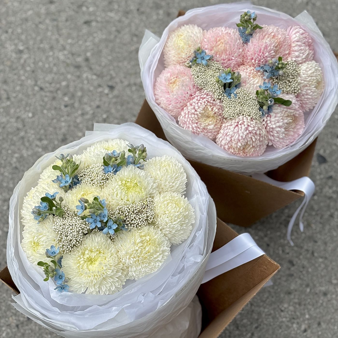 —БУКЕТ ИЗ ХРИЗАНТЕМ И ОКСИПЕТАЛУМА